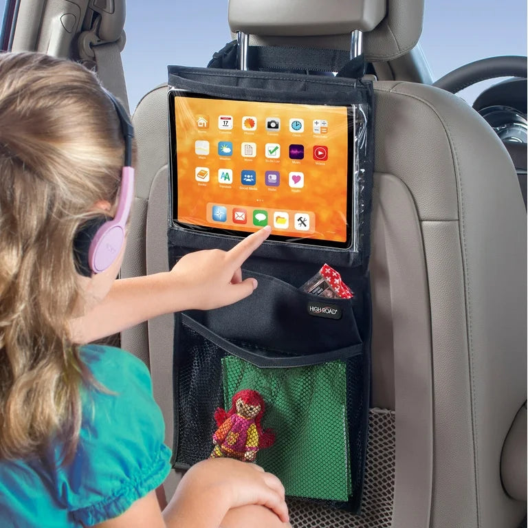 Transform your car with this sleek black seat organizer. Designed to securely hold your iPad while keeping your interior clean and modern. Enjoy a premium design enhanced by soft natural lighting for an exceptional driving experience.